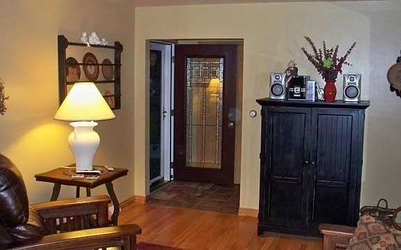 Beautiful yard and Charming inside.2 bedroom 1.5 bath ranch home. As you walk in you will see new exterior doors, new windows, new hardwood flooring in living room. Hardwood floors in bedrooms, Newly tiled floor in foyer, bath, kitchen and hall.New vanity,mirror in main bath. Lower level rec room with a bar and 1/2 bath.Out side to the gorgeous fenced in yard with newer roof, brand new custom built carport attractive flowers and landscaping also a sand point. Very nice neighborhood. Move in ready.