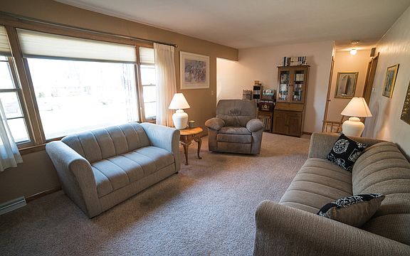Solid built home in quiet, well established neighborhood. This lovely Ranch Home has been well maintained and includes many updates such as a new roof, newer vinyl siding, and all newer mechanicals. The Living Room as a large picture window making it light and bright and leads to the eat-in Kitchen with plenty of white cabinets and features a new stove. Three generous size Bedrooms and a full Bath complete the main level. The third Bedroom is also connected to the Kitchen and could serve as a formal Dining Room. The clean and dry lower level features a large Rec Room and plenty of storage. Off the Kitchen is a large deck overlooking the yard with mature trees and an oversize 2.5 car garage with new overhead doors and openers. HW floors under the main floor carpet. HSA Home Warranty is included.