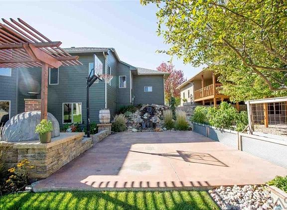 Exciting walkout ranch is located in southeast Sioux Falls with great convenience to bike trails, parks, pool, schools, library, wellness center, shopping, and dining. Comfortable floor plan is open where everyone is included. Easy working kitchen and spacious dining area with glass doors to an east-facing screened-in porch and open deck; perfect for early morning sunshine, late afternoon shade, and relaxing. The spectacular lower level patio has a fire-pit and pizza oven, plus a beautiful and tranquil backyard with waterfall and sitting area! Exceptional Master Bedroom suite is like a retreat. Private bath has a walk-in steam shower, whirlpool tub, and twin sink vanities. Total of 4 bedrooms, 3 full baths, 3550 finished square feet plus good storage. Handy main floor laundry room and a back foyer with access to an oversize 3 car garage. Lower level is perfect for entertaining; wet bar, media and game table areas. Stylish decor and excellent condition! You want to see this one!!!