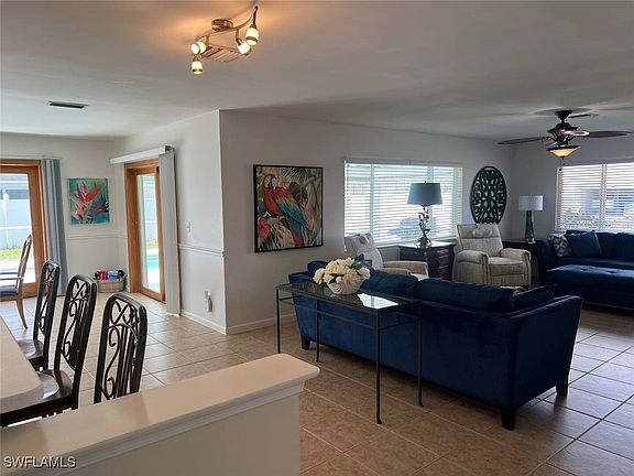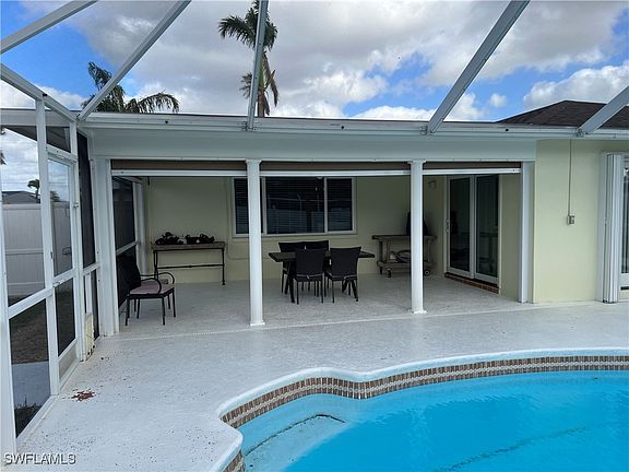 WESTERN EXP POOL HOME! with great location and in the very desired neighborhood of Palaco Grande. This beautiful home sits across from the CaloosaHatchee River on an oversized corner lot. Features 3 BR, 2 BA, 2 car garage w/over 1,700 Sq Ft of Living area. The kitchen includes plenty of cabinet and counter space, wood cabinets, and two breakfast bars. Enjoy the large outdoor living area that caters to the Florida lifestyle w/heated pool & spa & private covered patio. The outdoor area is completely fenced w/6 ft white privacy fence to relax and enjoy your peace. Palaco Grande is a mature beautifull maintained neighborhood located close to Downtown Cape Coral, Jaycee Park, the Yacht Club, Shopping, Dining, RSW & Punta Gorda Airports! This home is a must see. Offered long term and short term Rental.