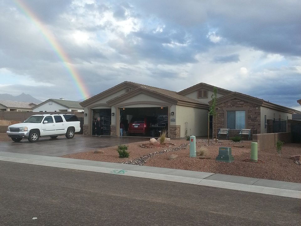 4+2 in Hualapai Shadows subdivision. (Realtors welcome, bring your clients). This property measures 122' 3" x 70' 5" which equates to 8,606 sq ft. The basic model was 1,546 sq ft but we added 60 sq ft to the floor plan making it 1,606. $20K in upgrades. All furnishings and appliances negotiable. Builder's Standard Upgrades include: Front yard fully landscaped with irrigation system, plants, tree, small boulders, mound, river bed Hot water circulation loop throughout house Water softener loop Granite counter tops in kitchen and vanities 8 ft high garage doors with window panels 14 ft wide RV parking with gates on both sides of house Full RV hook ups Self closing cabinets and drawers Upgraded carpet padding in bedrooms Stamped concrete 3 car driveway Wash basin in garage Two tone exterior paint 2 pantries Additional Upgrades either built into home during construction or added after include: All concrete color stained and sealed Garage floor epoxy coated 9 ft wide single bay garage opening (fits Super Duty crew cab without folding in mirrors (standard is 8 ft wide) Extended 3rd bay in garage for workshop with slider window and 50 amp 220 volt outlet with additional outlets and ceiling lights R.O. system installed in garage not under kitchen sink, supplies refrigerator and kitchen sink Hot water re-circulation pump Front courtyard with decorative fence Programmable controllers for exterior lighting Outdoor storage closet built into structure with lighting and shelves Living room has 10 ft high flat ceiling, rest of house is 9 ft flat ceilings Second set of cable/phone, and speaker wire drop in south living room wall Upgraded ceiling fans in all rooms Window coverings Additional kitchen cabinets and lengthened granite counter with composite sink Additional medicine cabinet in Master Bath Additional (10 inch rain head) shower head in master bath with tile up to the ceiling 18 inch floor tile throughout house (standard is 16 inch) Living room has all tile floor (standard is carpet) Auxiliary speakers in garage and back patio with wiring ran from living room Additional electrical circuits for front yard lamp post and back yard water feature/lighting. Insulated garage doors and insulation in garage attic Appliance upgrade package from GE with extended warranties. Range hood exhaust vented to outside Back yard is fully landscaped with decorative rock, trees, planters, water feature, arbor, lighting, storage shed, raised garden bed, decorative fencing to separate dog area, custom dog house. Please call for an appointment. We will be glad to show you our house. Thank you! Leena 801-726-7316