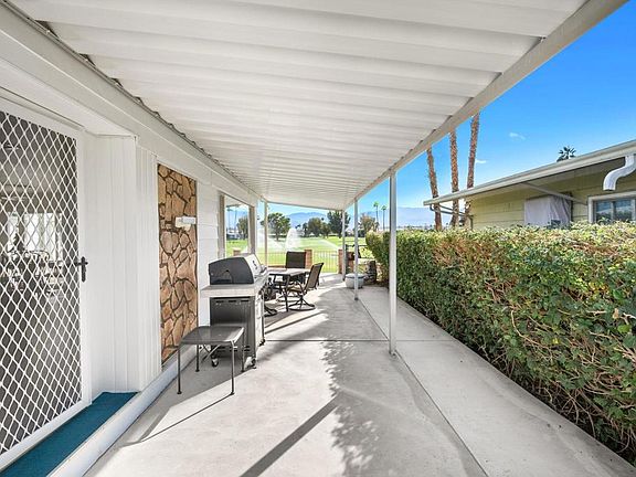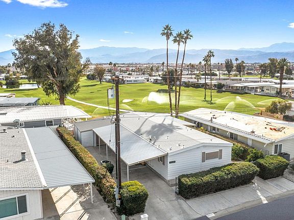 Beautiful remodeled golf course home in Tri Palm Estates & Country Club! Located on the 14th hole, this lovely home features views of the course, pond, and panoramic mountains from the covered patio, as well as from indoors through the large picture windows. The floorplan features plenty of room for entertaining, as well as a wet bar. Lovingly remodeled, updates include flooring, sheetrock, paint, kitchen and baths, recessed lighting, fixtures, ceiling fans, ceiling, gas lines, water main, electrical lineset for HVAC and 6-year old A/C. Bedrooms are large and comfy. Outdoors there's plenty of room for entertaining, and you'll enjoy fruit from your mature citrus trees. The lot feels very private, with a mature hedge and gated fence in front. And it's located just steps from the community clubhouse! Tri Palm Estates is an active 55+ community WHERE YOU OWN THE LAND and where ownership includes free unlimited golf for 2 deeded owners on the 18-hole and 9-hole par-3 courses, as well as putting green, swimming pools and spas, tennis, pickle ball, shuffleboard, and use of the Clubhouse with its banquet hall, restaurant, bar, billiards room, and organized clubs & activities. The community is located near Costco & Sam's Club, Home Depot, Walmart, the Agua Caliente Casino & Resort, and the Eisenhower Medical Campus. With easy access to I-10 you're just minutes from Rancho Mirage, Palm Desert and downtown Palm Springs. Enjoy the stunning views from this beautiful desert home!