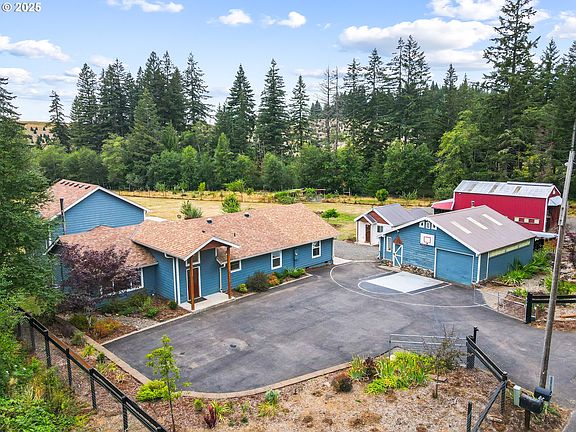 Welcome to a property you where you and your guests will never want to leave. Situated next to Weyerhaeuser and surrounded by trees, you'll find this a peaceful and private setting to enjoy all year. The lovingly cared for 3,050 sqft, 4-bedroom, 2-bathroom home has been tastefully updated. The stunning kitchen and open floor plan make entertaining a breeze. Right off the kitchen is easy access to the covered deck with room for outdoor dining, extra seating and all your outdoor cooking needs. Immediately upon entering the home you will notice high ceilings, LVP flooring, and modern yet timeless touches. Other updates include the hall bathroom complete with double sinks, quartz counters and a glass enclosed shower. There are also updated cabinets throughout the entire home. The primary suite includes his and hers closets, walk-in shower and access to the back deck. Enjoy ample space and storage in every bedroom. Tucked above the living room is a large loft for office, game room, guest room or??? This wonderful 4.77 acres of usable land is fenced, gated and offers a year-round creek, unique hangout/tree fort, fenced in garden and orchard, a shop/barn, detached garage, and chicken coop. The 40x40 barn has concrete floors, drain, loft/studio space and enough space for all your toys OR can be used as shop. Last but not least, separate bunk house! This charming and accommodating space is a must see! Perfect for in-laws, guests or your own private retreat. This property is ideal for anyone looking to put space between you and the hustle and bustle of the city. Don't wait to see this one!