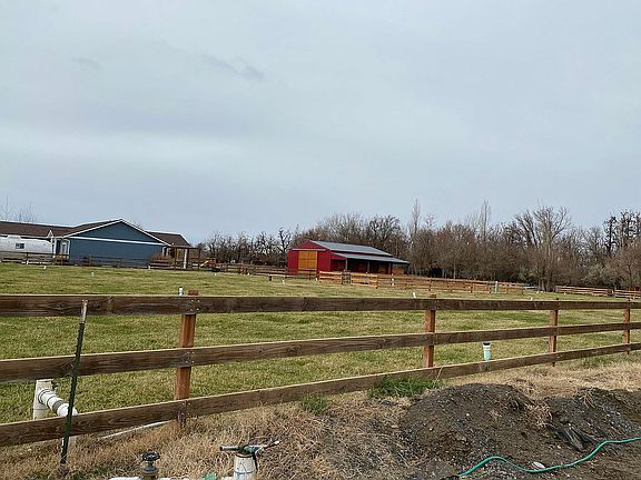 This beautiful house sets on 4.9 acres, with 5 acres water rights. It is a 3 bedroom, 2 bath open concept with vaulted ceilings. Built in 2015, one owner home. Property includes a 30 X 36 foot barn with an attached 10 foot lean-to. Barn is insulated in the walls and ceiling with electricity and water inside. Also a separate 40 X 20 lean-to and fenced area, Chicken Coop, Goat Shed, Fenced Garden Area and Round Pen. Pasture has solid set sprinklers.