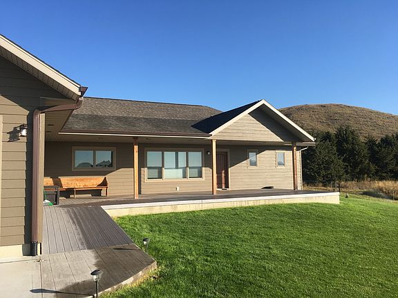 A beautiful 3 year old house located in the heart of the sandhills. It is a 4 bedroom and 2 1/2 bath home that has an attached garage with an office and room for storage. There are 2284 sq. feet of living space with a nice open kitchen dining area. It includes a mud room and laundry room, two fireplaces and wonderful deck. The house is nestled in behind a established windbreak and large hill, hosting a beautiful view. This is a beautiful home that must be seen to be appreciated! There is also a 54 X 36 metal building. It is located 26 miles SW of Hyannis Nebraska.