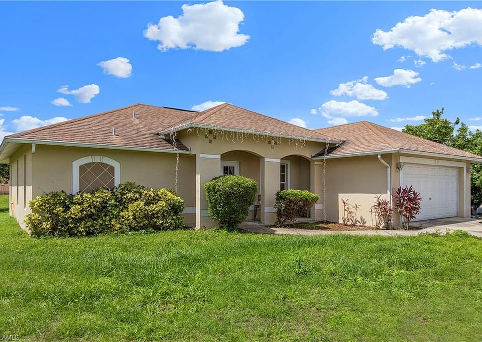 This spacious, well-maintained, 4 bedroom home with high ceilings and tile throughout features a large, screened-in lanai, attractive open floor plan ideal for entertainment, and granite counters in the kitchen. In addition, the den can function as a study or additional bedroom. The master suite features tray ceilings, a garden tub, a nicely-tiled shower, and walk-in closets. Southern rear exposure allows for pristine sunset views. This home is located in beautiful Southeast Lehigh Acres near the recently-widened Highway 82 for a relaxed commute to Fort Myers, Bonita Springs, Immokalee, and Labelle. Investors - home is rented for $1350 monthly and property management is happy to stay on. AGENTS - IT IS IMPORTANT THAT YOU READ REALTOR REMARKS THOROUGHLY.
