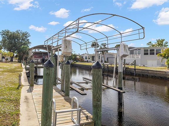 Your Perfect SWFL Waterfront Retreat Awaits! Welcome to this completely renovated, turn-key 2 bedroom/2 bath waterfront home in the desirable55+ community of Pelican Harbor – all you'll need is a toothbrush! This beautifully updated property offers the ultimate Florida lifestyle with incredibly low HOAs that include water, sewer, trash, and community pool access. Waterfront Living at Its Finest: Enjoy 55 feet of water frontage with a seawall, wooden dock with electricity, and a covered boat lift (4500 pound capacity). Gulf access means endless days on the water exploring everything SWFL has to offer – from world-class shelling on the barrier islands of Cayo Costa to world-class tarpon fishing right in your backyard. Charlotte Harbor is home to over 400 dolphins, making every day on the water an unforgettable experience! Inside & Out: This home comes completely furnished and features fresh paint throughout and new laminate plank flooring. The open floor plan creates a bright, welcoming living space, while the kitchen offers plenty of cabinet and counter space plus a pantry. Both bedrooms provide generous space with abundant natural light. Inside laundry room includes stackable washer/dryer. The membrane roof was installed in 2019, giving you peace of mind for years to come. Step outside to your nice-sized backyard – the perfect spot to enjoy stunning sunrises and sunsets over the water! Community Perks: Pelican Harbor has recently invested in upgrades including freshly repaved roads throughout the community, an updated water treatment plant, and an improved community center. Plus, enjoy FREE boat trailer/RV storage – a rare and valuable amenity! Unbeatable Location: Minutes to downtown Punta Gorda for shopping and dining, close to Sunseeker Resort, Fishermen's Village, Punta Gorda Airport, and easy access to I-75. By boat, you're just minutes to the Peace River for incredible fishing and exploring. Don't miss this excellent opportunity to own your slice of paradise in one of SWFL's most sought-after waterfront communities. Call today for private showings and more information!