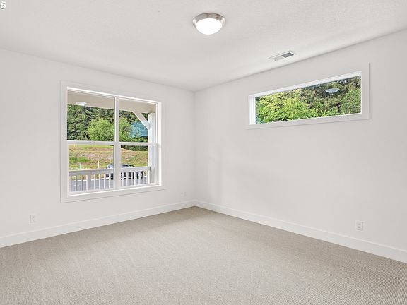 Corner homesite! Large bedroom and full bath on main with direct access and accessibility features! This home provides ample living space furnished with drop bevel white cabinetry, slab quartz countertops with undermount sinks, raised gas fireplace with floating box beam mantle, luxury vinyl plank flooring and Whirlpool stainless steel kitchen appliances. Includes 5-burner gas cooktop, wall oven and wall microwave, and stainless steel tub dishwasher. Upstairs you will find a spacious primary suite, all tile shower, garden tub, dual sink vanity, and a roomy walk-in closet plus 3 additional bedrooms and a large bonus loft. Covered Trex deck with gasline for future BBQ! Earth Advantage Certified!