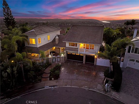 Welcome to this spectacular hilltop estate in La Costa, where luxury meets the best of coastal living. Perched at the end of a peaceful cul-de-sac on a spacious lot, this beautifully upgraded home offers panoramic views of the ocean, lagoon, golf course, and city lights. The property features a 5-bedroom main residence and a detached 2-bedroom guest suite—ideal for multigenerational living, guests, or rental income—along with a 3-car garage. The main home has been tastefully remodeled in 2006, 2018, and most recently in 2025. It boasts two main-floor primary suites, each in a separate wing for optimal privacy. The elegant formal dining room with a fireplace opens to a spacious living area and a chef’s kitchen complete with dual islands, stainless steel appliances, and brand-new cabinetry with abundant storage. The expansive family room features a cozy fireplace and large picture windows that frame the stunning views. Upstairs, the primary suite offers a private balcony with ocean views and a spa-style bath with a jacuzzi tub, steam shower, and walk-in closet. The detached 2-bedroom guest suite includes a private entrance and offers incredible flexibility for various living arrangements. Step outside to your private resort-style backyard, designed for both relaxation and entertaining: 60-foot freeform pool with spa and diving board Built-in BBQ and outdoor shower Expansive patio areas, gazebo, and lush landscaping Fruit trees (apple, fig, lemon, pomegranate) Evening ambiance lighting throughout the yard Additional highlights include: Five fireplaces, wrought iron staircase, and crown molding Dual-zone HVAC, two water heaters (including one tankless), and central vacuum Epoxy-finished garage floors and ample storage No HOA or Mello-Roos Located just minutes from the beach, award-winning schools, upscale shopping, and fine dining, this exceptional La Costa property combines luxury, privacy, and breathtaking views—offering a rare opportunity to own one of the area’s most desirable homes.
