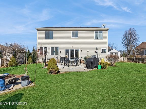 If you are looking for a great community to live in that is close to everything you might need, then look know further! This Beautiful 4 bedroom 2.1 bathroom home in the much sought after Running Brook Farms Subdivision offers a lot of great features. With its 2799 square feet of living space and 9' ceilings on the first floor, you have an abundance of room for family and entertaining. Walking into the home, you are greeted by the large living room / dining room space that looks through to the family room and onto the patio. The generous sized family room has large windows that let in lots of natural light and views of the back yard. The dining area in the kitchen features a big triple glass door that takes you out to the concrete patio and has plenty of room for a good sized kitchen table. The Kitchen features stainless steel appliances and plenty of cabinet and counter space for storage. With its large island, you also gain more storage and extra seating for family and guests. The kitchen also has a big walk in pantry! The 3 car garage has plenty of room for wall cabinets and high ceilings to create over head storage. The second floor is where the fun begins! When you get to the top of the stairs, you walk into your own personal home theater room! This big gathering space is centered around the 3 bedrooms and primary suite. The second floor is also where the laundry room is located for ease of use. The primary suite features a vaulted ceiling, 2 walk in closets, and its own bathroom with soaking tub and separate shower. The unfinished basement with its tall ceilings is a blank canvas waiting for you to create the space of your dreams! If you are in need of yard space, this well groomed fenced-in backyard with its pear and apple trees, large concrete patio and firepit is ready to welcome you to a relaxing atmosphere and entertaining. It also has its own shed for, you guessed it... More storage! The home is located just minutes away from schools, restaurants, shopping and entertainment. You also have plenty of outdoor activities nearby as well! Boating on the chain of lakes, walking paths of Moraine Hills State Park, or even the McHenry outdoor theater!