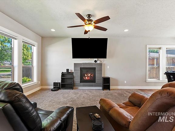 Nestled in northwest Boise on a lovely corner lot you’ll discover sunbathed open living accented with modern touches. Revel in the generous windows, spacious rooms and soaring ceilings throughout. The open great room with its tiled fireplace is an entertainer's dream and the kitchen is fit for a chef boasting quartz counters, a breakfast bar and stainless-steel appliances. Your sanctuary awaits in the main-level primary suite, complete with a spa-like ensuite featuring dual vanities, a tiled shower and a walk-in closet. Find convenience in the numerous storage closets throughout the home. The fully fenced backyard is a tranquil oasis with ample room for relaxation and patio enjoyment. Located near Veterans Memorial Park, the Boise River, Hyde Park, downtown Boise and a network of hiking and biking trails in the foothills, endless recreational activities surround you!