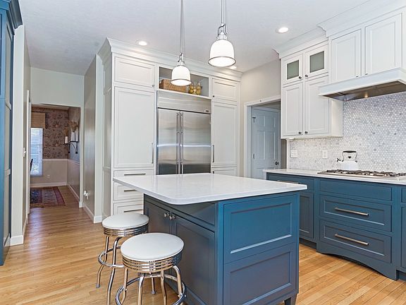 Breathtaking two story ON THE LAKE in desirable Golden Eagle subdivision. Open and bright floor plan with an abundance of natural light and stunning lake views from the majority of rooms in the house. Completely remodeled gourmet kitchen with custom Amish cabinets, quartz countertops, GE Monogram appliances, under cabinet lighting and gorgeous tile backsplash. No expense spared and this kitchen is everything!! Spacious family room with gas fireplace and built ins surround. Elegant living room, separate dining room and amazing sun room with planning desk and custom lockers located right off of the kitchen. Large primary suite with a wall of windows over looking the lake. Enormous walk in closet and primary bathroom. Three additional bedrooms up, all with hardwood flooring, ample closet space and a 2nd full bathroom. Full finished basement with huge family room, 5th bedroom and 3rd full bathroom. Large backyard with a portion of it fully fenced, professionally landscaped, mature trees, and the lake. Recent updates include: Kitchen remodel 2015, 1/2 bath remodel 2015, fireplace surround 2016, hardwood flooring installed upstairs, overhead garage doors 2016, new front door 2021, sump pump 2022, radon mitigation system, roof 2012, new 96% efficient 2 stage variable speed furnace and 16 S.E.E.R air conditioning unit installed in 2021. Separately metered lawn irrigation system, fence installed 2020. Water heater 2013 *Information deemed reliable but not guaranteed*