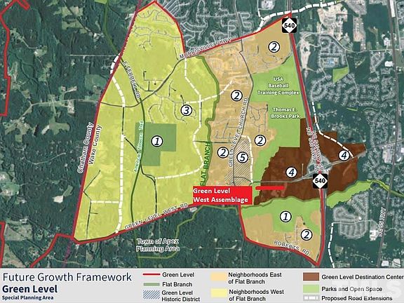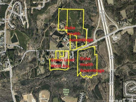 17.55 acre assemblage available for development in the Destination Center area of the Town of Cary's Green Level Planning District. Close proximity to 70 acre assemblage which Duke Health Care is currently developing. This is the only area of non-residential and high density residential development in the TOC Green Level Planning District. Great access to I-540, less than 1 mile to interchange and all utilities available to site. Site addresses included 3313, 3305 and 3317 Green Level West.