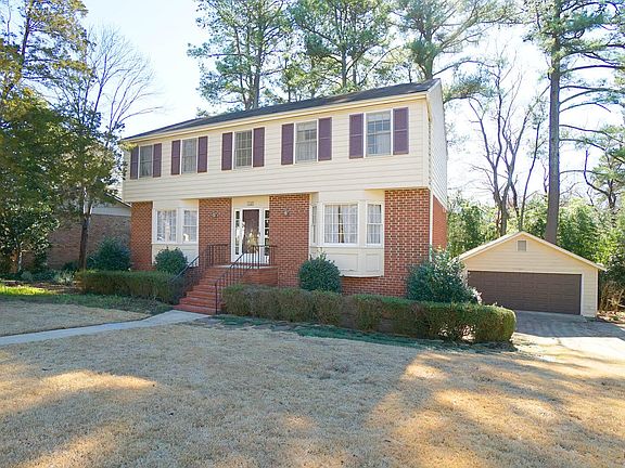 Well built home in superb location near Rex Hospital. Traditional style and traditional floorplan. Hardwood floors throughout. 4 bedrooms and 3.5 baths. Lots of extra space in basement level with 2 bonus rooms and a very large Rec room with fireplace. Detached 2 car garage and large storage shed. Needs a little TLC.