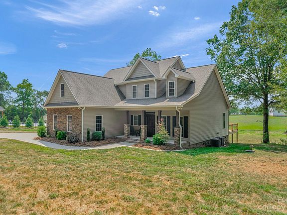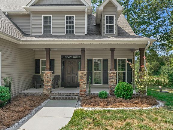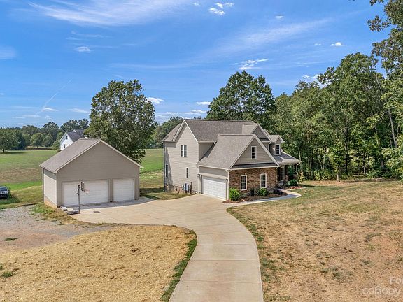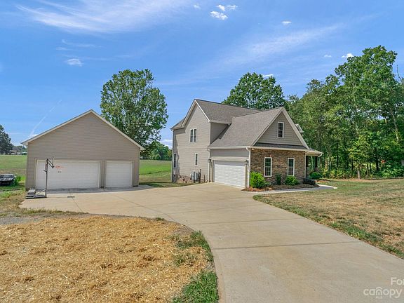Don’t miss your opportunity to own this gorgeous custom home with stacked stone accents throughout. Situated on an acre of land and nestled on a quiet cul-de-sac. When entering the home, you will find soaring ceilings and custom wood floors that were sawmill rough cut out of the NC mountains! Dining room with vaulted ceiling could also make a great flex room (office, playroom, music room, etc). Kitchen with granite and stainless appliances is open to the breakfast area. The 2 story family room has a vaulted ceiling, stacked stone fireplace, and open staircase with black metal railing. Indulge in the luxurious main-level primary suite, featuring a standalone tub and a walk-in tiled shower with rain shower head for relaxation. Upstairs you will find two additional bedrooms, bath, bonus room, plus a storage area. Step outside onto the large deck overlooking the expansive backyard. This home has a two car attached garage, plus a spacious three car detached garage with electricity.