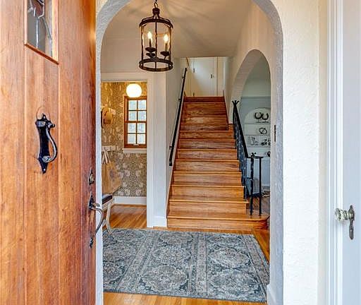 Character abounds throughout in this beauty... from the wooden front door as you approach the first step, the rod iron staircase handle & balusters, numerous fireplaces, built-ins, cove ceilings, nooks and ongoing little treasures to delight your everyday living! The arched doorways encompass each room, while modern amenities including stainless steel appliances, updated kitchen cabinets, granite countertops, and a large and luxurious bathroom completes the en suite primary bedroom. Additional exterior photos will be added on March 20th, but don't miss your chance to see this in person!