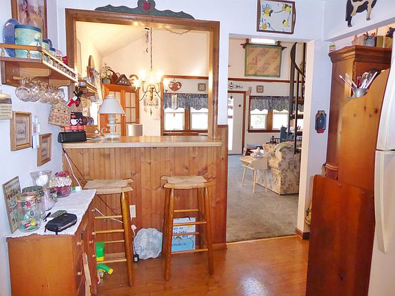 WELCOME TO THE LAKEHOUSE! Charming home on manageable size yard and beautiful views of the lake. Features efficient kitchen with counter bar and entrance to the covered deck--a deck with a lake view. The living room is huge and has cathedral ceilings, which really opens it up, and is complete with dining area, built in cabinetry and large closets. There is one bedroom on main floor and one full bath. The spiral staircase accents the cathedral ceiling and access to the second bedroom in the loft. Warm wood accents throughout the home. Basement houses the utilities. Current owners have a pier just across the street. Buyers would have first option to continue the lease through Laurel Lake Property Owners Association. COME BUY!