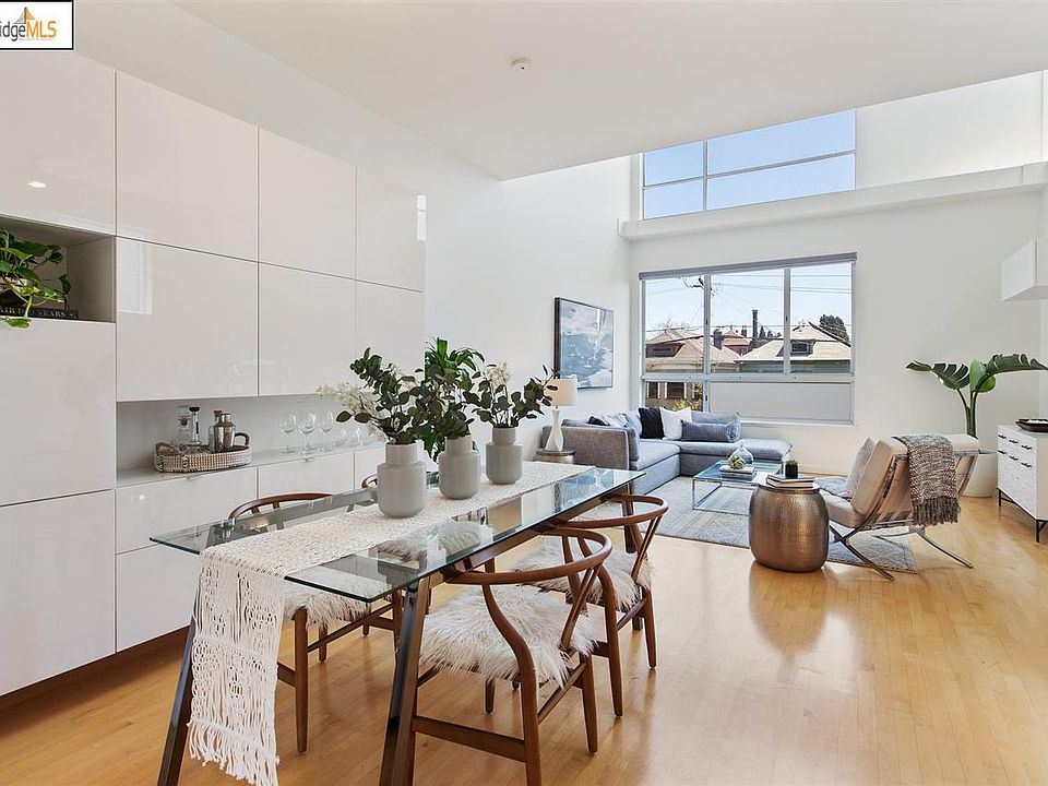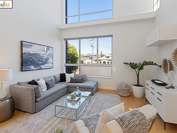 Stunning tri-level loft townhome designed by award-winning architect, David Baker. Amazing light & volume. Exterior is thoughtfully landscaped, complete w/blossoming magnolia tree. Main/middle level: Open-concept floor plan w/22-foot ceilings & dramatic windows w/remote controlled blinds. Fantastic chef's kitchen: gas stove, stainless appliances, & room for island workspace. Kitchen flows to spacious dining area w/high-gloss built-in cabinets. Luxe living room features expansive walls, perfect for displaying art, or projected film/video. Upper Level: Floating stairs lead to sexy bedroom mezzanine, elegantly draped for privacy. Plenty of room for reading, relaxing, or meditation. Spa-like en suite bathroom w/dual sinks. Walk-in closet. Lower level bedroom opens to glorious garden patio w/room for hot tub. Lower level has full guest bath. Close to Bart & Amtrak, major Hwys & transportation. Convenient to SF. Oakland, Berkeley, & Emeryville amenities, shops & dining are all nearby.
