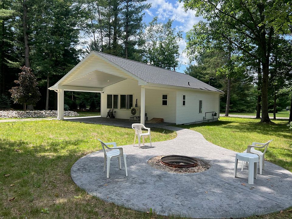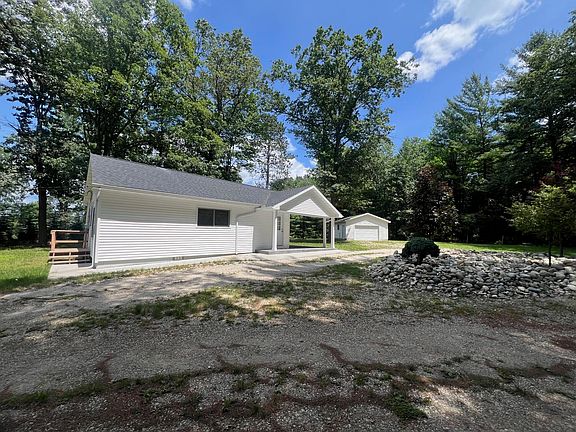 Welcome to your perfect weekend getaway or full-time residence! This beautifully remodeled 2-bedroom, 1-bath home sits on 1 acre and features a detached 2-car garage. Enjoy outdoor living with a 13 x 28 covered porch, stamped concrete patio, and a walkway leading to a cozy bonfire pit. The home is surrounded by beautiful landscaping, adding to its charm and appeal. Don't miss out on this exceptional property, offering comfort and tranquility in a picturesque setting. Schedule your private showing today!