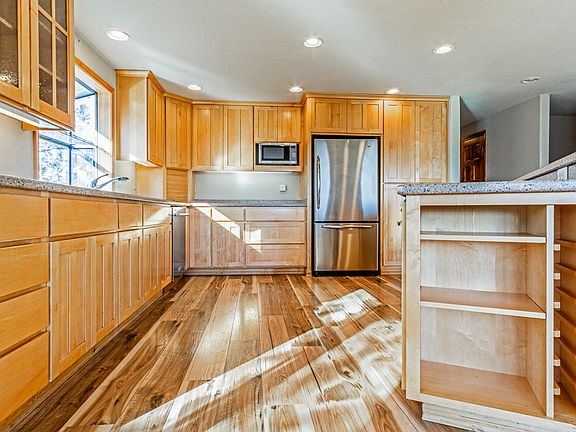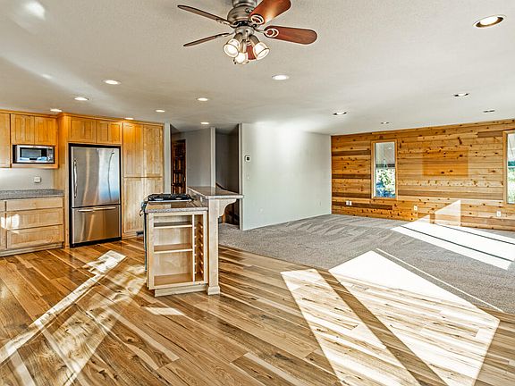Perched on the hillside with beautiful natural light and expansive southern views. Original owners and very well maintained. Upstairs you will find the open floorplan which includes the kitchen, dining and living rooms along with three bedrooms including the primary. Downstairs hosts one bedroom, a full bathroom, an office and bonus room. There is also a detached 600 sqft garage/shop with lofted storage, a tall garage door, and a work bench. The shop hosts a 7.8 kW solar system to assist in powering the house. On 0.72 of an acre you will find privacy, space to garden, and tinker in the shop. Sitting next to million dollar homes this gem of a house will steal your heart.