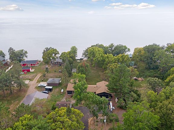FABULOUS!! Lakefront retreat! This stunning one-level home has it all! Bright open spaces throughout the home highlight panoramic views of the lake! The perfect picturesque backdrop for gatherings with loved ones or quiet moments of reflection by the fireplace. Retreat to the luxurious master suite, complete with breathtaking views. The sprawling lawn leads down to the 115' of sandy lake shore, where you can enjoy swimming, boating, or simply relaxing by the water's edge. Ease for friends with campers!! Sewer hook-up just for them!! New roof, siding and windows, 4 car heated attached garage with a drive thru garage door on the lake side with an additional 2 car detached garage will be the home to all your water crafts and toys! Whether you're seeking a peaceful weekend getaway or a year-round residence, this lakefront home offers the perfect blend of comfort, luxury, and natural beauty. Welcome home to lakeside living at its finest!