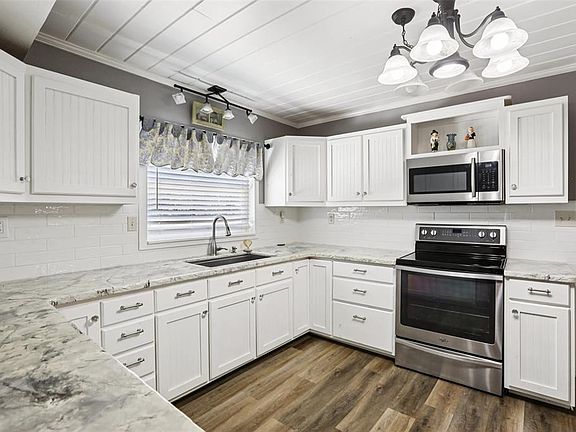 Beautifully remodeled kitchenThree comfortable bedroomsSolid cement-block homeOpen floor planFenced backyardLarge storage shedSpacious corner lot