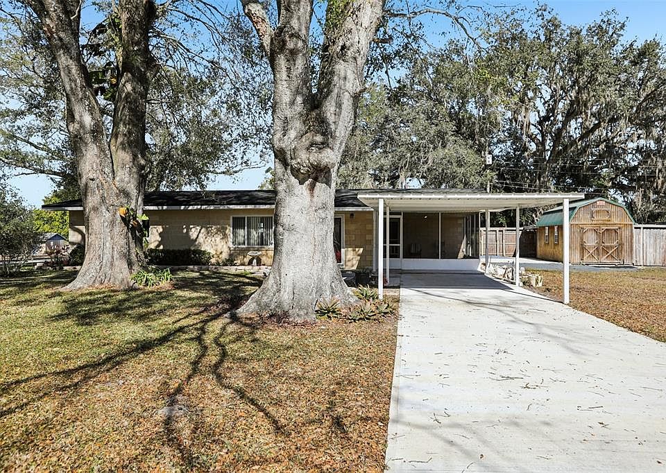 Escape the hustle and bustle without sacrificing convenience! Nestled on a spacious corner lot shaded by majestic large oak trees, this solid cement-block home offers the perfect "Old Florida" country setting while keeping you connected to everything you need. This is the ultimate commuter’s sanctuary, offering immediate access to I-75 for easy trips to Ocala or Tampa, SR 50 toward Orlando, and US 98 to Lakeland. Step inside to discover a rustic yet modern interior featuring stunning tongue-and-groove ceilings and durable new wood-plank flooring. The open floor plan flows seamlessly from the living and dining areas into a beautifully remodeled kitchen, complete with newer cabinets, countertops, and appliances. The home features three comfortable bedrooms with aromatic cedar closets, two full baths, and a convenient rear laundry room. The outdoor space is ready for your toys and hobbies. Enjoy a fenced backyard, a paved driveway, a large storage shed, and an expansive side yard—all with a roof that was replaced in 2015. Whether you enjoy hiking the trail to Inverness, fishing the Withlacoochee River, or visiting the 20,000 acre Croom hunting preserve, nature is right at your doorstep. Best of all, there are no HOA fees. Don't let this peaceful retreat slip away—call today for a private tour!