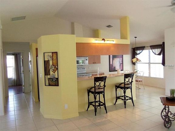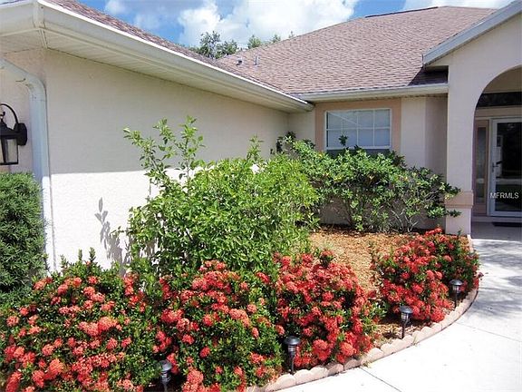 Absolutely Gorgeous home with an open and flowing floorplan and volumn ceilings and beautiful landscaping. Separate Dining Room with pretty chandelier. Beautiful living room with breakfast bar to kitchen and Built-In Shelving. Well equipped kitchen with separate dining nook and Pantry. Indoor laundry room with washer and dryer included. Split bedroom plan with large master bedroom on right and huge master bath with separate garden tub, shower stall, and dual sinks. Beautiful wood laminate flooring in bedrooms and large ceramic tile in living area. Huge back lanai overlooks beautiful yard with many flowers, pineapple plants and fruit trees. A perfect place in the back yard behind the gate to park an RV, Boat, or extra car. Storage Shed in back yard is included. Sugar Mill Lakes features playgrounds, a park, and tennis courts. Plenty of room for a pool if someone would desire. Very private back yard is totally fenced with privacy fencing. Pretty neutral colors throughout. Big 2-car garage with separate door to side yard and lots of room for a workshop area. This home is in move-in condition. No CDD and very reasonable deed restrictions. Located near Prime Outlet Mall and an easy drive to Bradenton, Sarasota, or Tampa-St. Pete area. The furnishings remaining in the home are included.