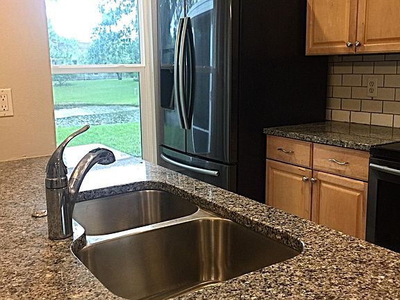 Three bedroom two bathroom home in Oak Terrace. Spacious living room with french doors that lead to lake view. Beautifully updated master bathroom with a walk in shower that has been recently remodeled with travertine. Porch and paved area with fire pit in back yard are great for entertaining.