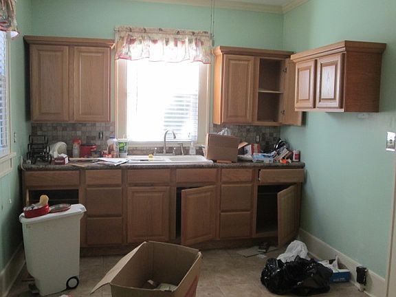 This is a jewel in the rough. High ceiling, hardwood floors, renovated kitchen with tile floors. Two bedrooms, bath, heating hall, plus a large laundry room (office, etc) off kitchen and a sunroom. In back there is a one bedroom apartment with large living area, 1 bedroom and 1 bath over a double car garage. The shared driveway is paved with brick. At one time the yards were probably beautiful and could be so again with some work. Square footage is from tax maps so if that is important, please measure it.
