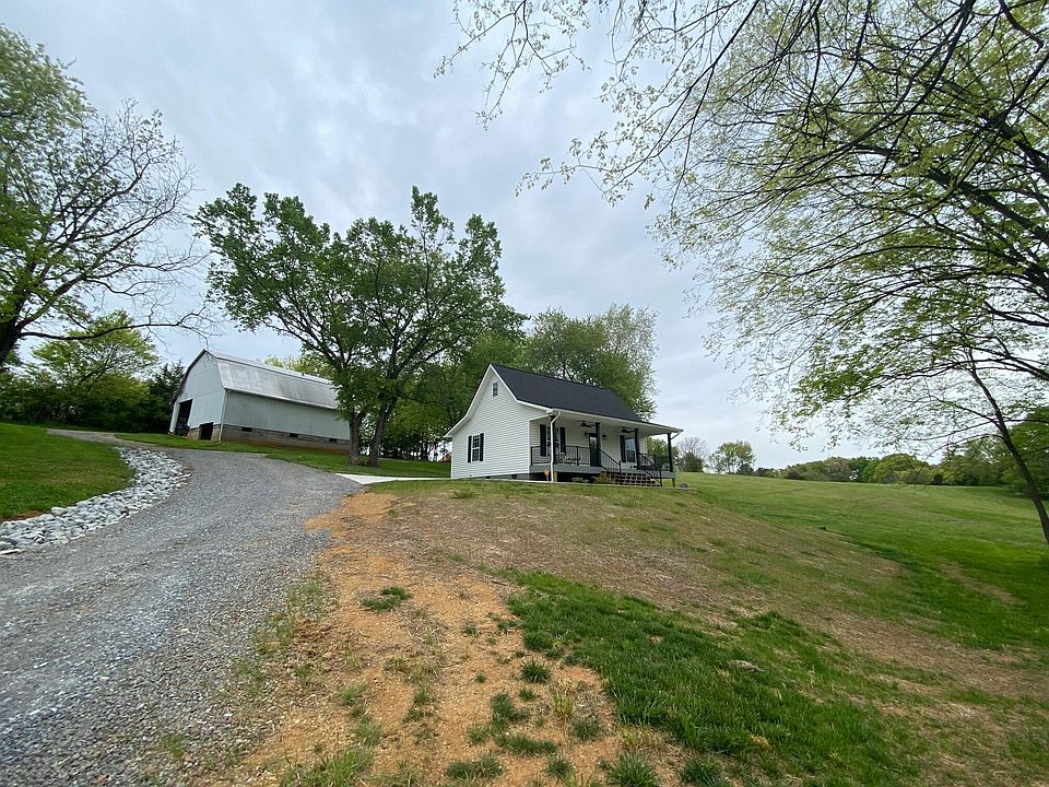 This charming new cottage sits on a knoll near the beginning of the beautiful ~14 acres rolling land. The cottage features stainless appliances, LVP flooring, granite tops and is perfect for a vacation home, second home, or AirBnB. It could be used to live in while building a dream home on the back of the property. A large barn sits on the property as well. It has doorways tall enough for most any RV to park in. Tractor, bushhog and mower are for sale as well as house furnishings if the buyer is interested. Property is gated and secured with cameras.