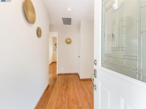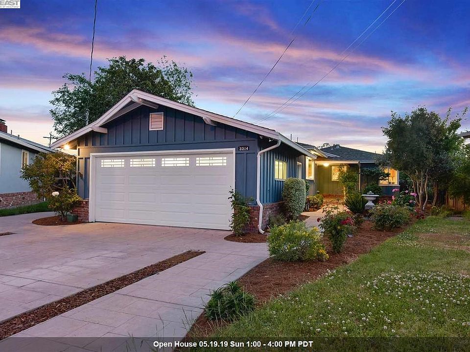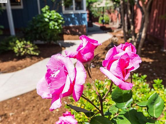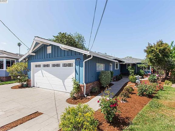 Situated in one of Alameda's most desirable areas of the East End, This beautiful single-level home was built in 1958 and has been tastefully remodeled to reflect 21st century aesthetics. The home is located at the end of a quiet cul-de-sac and sits on a deep lot, surrounded by lush landscaping and an abundance of fruit trees. The four bedroom, three bath home has an additional room used as an office, with its own entrance from the side yard. It is everything a family could want in a home; location, beauty, space and privacy. This highly sought after, rarely available property is a Must See. Location makes this home a Buyer's Dream. The house exterior presents a classic mid-century design with clean lines, low pitched, multiple rooflines with overhanging eaves, stone walkways on either side of the house leading to a covered front door. Beautifully landscaped yard accent the many rose bushes, providing an incredible scent as you walk up to the entrance.