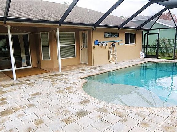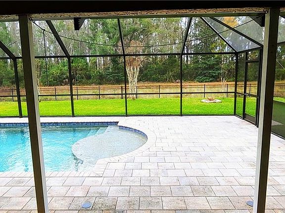 CONSERVATION LOT. MOVE IN READY. Beautiful open concept 3-bedroom, Den/Study, 2.5 Bath, 2.5 Car Garage 4-year-old Gulf Stream Saltwater Heated Pool. Almost 1900 SF of living space. Gracious living room and dining room, fabulous kitchen with wood cabinets, granite counter tops, breakfast bar overlooking family room & living room. All NEW appliances (never used) with manufacturer warranty. Large master suite and master bath with walk-in closets, his & her vanities, shower and separate garden tub. high ceilings. Split floor plan. Screened lanai with Pool, firepit and plenty of room for entertaining. Large wrought iron fenced backyard with view of the conservation. Beautifully landscaped. Chevron Hurricane panels for extra security. This home is well taken care of. A must see! Fabulous Location Convenient to Shopping, Restaurants, Airport, "A" rated Schools, Medical and New TRINITY Hospital. Longleaf Elementary School is just around the corner. NO CDD'S. Seller has documentation that home DOES NOT require flood insurance.
