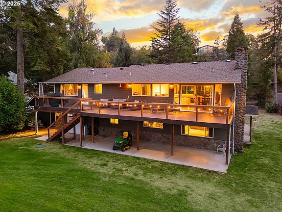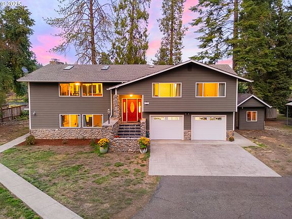 Welcome to 3314 Fisher Rd, A rare slice of riverfront living with 4 bedrooms, 3 bathrooms, and 2,648 sq ft to call home. This split-level has so much to offer. The daylight basement comes with its own private entrance, full kitchenette, bedroom, bathroom, and living/dining space making it perfect for extended family, guests, or even rental income. Upstairs, the main living area is built for gathering. The kitchen centers around a massive 10x5 ft island with natural stone countertops, hickory oak cabinets, and stainless steel appliances. The open layout flows right into the dining and living areas with large 10ft vaulted ceilings, perfect for hosting. Step outside onto the 12x57 ft Trex deck and take in the incredible sunrise views over the North Umpqua River. With an under-deck drainage system, you gain extra covered storage or a 12x57ft patio space you can use year-round, practically doubling your outdoor living area. The primary suite features a tiled soaking tub, walk-in shower, walk-in closet, and private deck access. An oversized two-car garage has room for projects and storage, and there’s even a shed with a roll-up door for tools, equipment, or toys. Between the garage and oversized driveway, you’ll have space for six or more vehicles + RV parking with ease. This property has grandfathered water rights and irrigation already in place, keeping your lawn green and lush year-round is simple. Homes like this don’t come on the market often. Schedule your showing and experience life on the river today!
