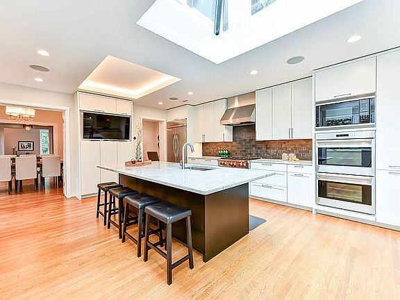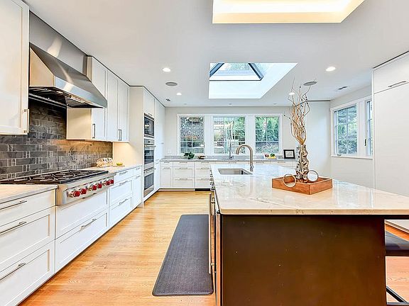Amazing Value! Welcome to this stunning 1929 Tudor detached home that has undergone a spectacular transformation. Sitting up high from Porter Street, this home has been meticulously renovated and updated, yet its original charm and character has been beautifully preserved. The home is insulated from the street by a large grove of trees, offers a large flat yard and has been given a brand new stone patio for outdoor grilling and dinning. The formal entrance into the foyer leads to a generously sized living room with a cozy wood burning fireplace, shimmering glass windows and an open airy flow into the front porch. When taking the side entrance, located just a few steps down from the 2-car garage and 2-car parking pad behind the home, you enter into the heart and soul of this mesmerizing home - the custom chef’s kitchen completed by premier local architects Cunningham and Quill. Complete with an enormous Calcutta Quartzite island, skylight, two Wolf ovens, Wolf microwave, 6 burner Wolf cooktop, 2 Bosch dishwashers, French door refrigerator, wine fridge, and 2 deep under mounted sinks, this is a kitchen to rival the latest spread in Architectural Digest. 4K television and built-in speakers convey, creating the perfect atmosphere for hosting dinner parties. The main level also offers a gracious dining room, an office or bonus room and a marble powder room. Upstairs you will find a lovely master suite with a walk-in closet and en-suite master bathroom with frameless shower door and marble tiles. Two additional bedrooms, connected through an enclosed sunroom and another full marble bathroom complete this level. Continue up to the top floor where a 4th bedroom and another full marble bathroom create the perfect guest suite. The basement offers a great recreation room, an in law suite, a bathroom and a wine cellar, as well as abundant storage. Additional Features & Amenities • 2 car detached garage & 2 car parking pad • 4 bedrooms + Sunroom • 3 full marble bathrooms, 2 powder rooms (also by Cunningham and Quill) • 9 ft ceilings • Gorgeous hardwood floors throughout • New windows (Anderson) throughout most of the home • Freshly painted • 3 zone air conditioning • Radiator heating • Quick walk to Cathedral Commons, Cleveland Park Metro, shopping and dining on both Connecticut and Wisconsin Aves. • Eaton Elementary School