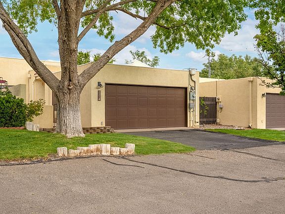 Very nice townhome located in a quiet cul-de-sac facing the Sandia mountains! As you walk into the front entry, you will find a large enclosed tiled courtyard with plenty of outdoor living space! The home has a large living room with a kiva fireplace and built-ins, two large bedrooms with access to the backyard from each room, and a two car garage! The kitchen has an island, beautiful granite countertops, and ample room for entertaining! Come view this gem just right of Country Club road, today!
