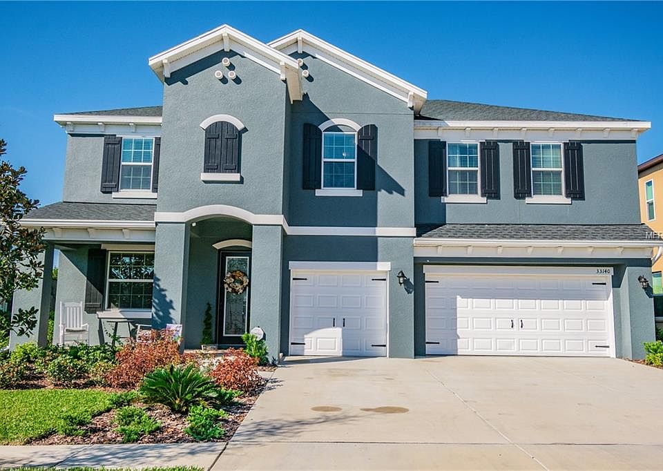 A MUST SEE! This Siesta 'D' Floor plan is a beautiful 5 BDR, 3.5 bath home with a 3-car garage. The kitchen has upgraded 42" white cabinets and white quartz counter tops. The Master Suite has a trey ceiling and is located on the first floor. The Owners bath includes a Garden tub, Shower and double vanities with Quartz counter tops. The entire first floor is wood tiled. Upstairs is a spacious Game Room, perfect for family nights watching movies. 4 large bedrooms upstairs complete this floor plan. This two story plan offers terrific connectivity between the open living spaces, casual dining and central kitchen. Watergrass Community is only a short distance from the Groves Shopping Center, Wiregrass Mall, Florida Hospital, Wiregrass State College, ICE Complex, Tampa Premier Outlet Mall. Close to I-75 & I-275. Located in Crown Communities' newest and spectacular master-planned community of Watergrass. Signature Crown quality is strikingly apparent in every aspect of Watergrass featuring a new Clubhouse and pool park with 6-lane Jr. Olympic pool, fitness center with HD TV's, playroom off the fitness area, multi-purpose/social gathering room, landscaped grounds, grand entrance walls, gated villages, antique-style street lamps, pocket parks, playgrounds and natural wetland areas that enhance the community.