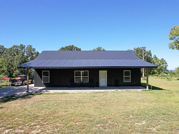 Welcome to this charming home nestled on 11 acres! Built in 2022, this home offers a spacious floor plan and stylish design. You're sure to notice the expansive 8X47 ft covered porches adorning both the front and back of the home. These generous outdoor spaces provide ample room for relaxation and entertaining. Step inside to discover an open floor plan with vaulted ceilings throughout the main living areas. The heart of the home features a well-appointed kitchen with sleek stainless steel appliances and a center island, adding a touch of sophistication to the space. This home offers three comfortable bedrooms, providing plenty of space for rest and relaxation. The master suite boasts a private en-suite bathroom, offering a serene retreat where you can unwind and rejuvenate. Two additional bedrooms and another full bathroom provide flexibility and convenience for guests or family members. Outside, a cellar on the property offers additional storage space! This one has it all!