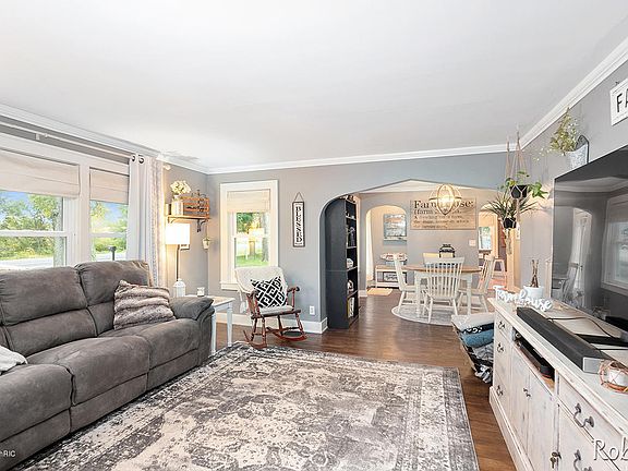 Charming describes this country home. Sitting upon 1.5 acres it is full of farmhouse charm. Upstairs boasts a large bedroom with sitting area. Walk in Closet and a 2nd bedroom. Main level has a bedroom, Large living room, Formal Dining room, quaint three season porch, formal entry with closet and a large country kitchen. Main floor laundry and a mudroom area. Two stall detached garage with an attached dog pen. Deck for summertime enjoyment to look out upon the fenced in yard. Turn around drive. There is an old barn upon the property with lots of barn wood.