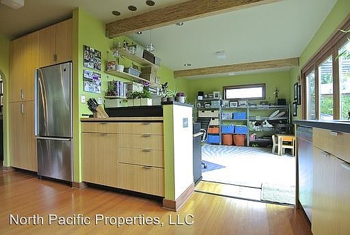 Gorgeous, Eco-Friendly 4 Bed/3.5 Bath Home in Beacon Hill! - Welcome to one of the most exceptionally stunning eco-friendly homes in Seattle! Viewing by appointment only please. Quiet, quaint 4 bedroom / 3.5 bath with 2,249 livable square footage (excluding basement and garage). Total square feet including storage basement and garage is 2,654 square feet. Every inch of this home has been re-modeled over the past 12 years with utmost attention to detail and commitment to eco-friendly design. Low VOC paints throughout home. The Kitchen: Custom bamboo cabinetry, PaperStone counters, bamboo flooring, dual fuel gas & electric oven, and stainless steel appliances. Incredible folding wall & window system folds up completely, opening the entire west wall of the house to the massaranduba (iron wood) deck for perfect indoor / outdoor living. Enjoy sunsets over the olympic mountains and twinkling lights of West Seattle right from your kitchen and deck. Lovely, open den or office adjacent to kitchen. Bamboo butcher block seated bar. Open layout to dining and living rooms. Fabulous Living First Floor: --Living room and dining rooms feature original oak hardwood flooring, original leaded glass windows, graceful arches, & cove ceilings. Windows are double glazed and energy efficient. Heated / radiant flooring throughout main floor & bathrooms, with modern, European radiators upstairs. Spacious living room, with separate entry and coat closet. Built-in, functioning fireplace with Fir surround. Inviting dining room with room for additional buffet. In-ceiling speakers in kitchen and dining room, along with wired-in speakers in living room and den/office are all centrally controlled. Surround-sound wired-in speakers in the downstairs bedroom/media room are controlled from the built-in media unit. Downstairs bathroom has recycled glass and ceramic tiles, heated pebble floors, and a full tub. Cozy Quarters Top Floor: --Stairs to upper level are bleachers upcycled from local Cleveland High School. Master bedroom with two walk-in closets and attached master bath. Cork flooring throughout entire top level with European baseboard radiators. Master bath boasts spacious glass shower with air-bath, modern glass tiles, and recycled ceramic tiles. Private balcony offers unforgettable sunsets with a view of the downtown Seattle skyline, Olympic Mountains, and Elliot Bay. Two bedrooms upstairs, both with attached closets. Playful treehouse" loft, firemans pole, and reading nook in one of the bedrooms. Beautifully designed separate bathroom upstairs with colorful marmoleum floors and full tub. Studio & Workspace: --Bottom level features expansive unfinished basement with storage racks. Attached one car garage with adjacent wood shop and finished powder room. Stunning work + artist studio with cork floors, plenty of daylight windows, built-in storage, and an exterior door leading to outdoor patio, garden. Vintage slate blackboards from Tacoma Elementary! Outdoors: --Watch hummingbirds feed in your organic wildlife garden, choosing from a number of spots to relax two decks, a sunny, private side patio, and shady space under the deck perfectly suited for a hammock. Kid-friendly playhouse built into the private back yard. - Monthly landscaping included! Some popular aspects of the neighborhood include: A block and a half from Jefferson Park with a state-of-the art playground, spray park, ziplines, and a mountain lookout. Jefferson Parks public golf course, driving range, bike path, skate park, tennis courts, and stunning view points Easy walking distance to the Beacon Hill light rail station. Quick walk to the newly re-modeled Beacon Hill public library branch. Restaurants, bars, and coffee shops popping up in the neighborhood regularly current hot spots include Bar Del Corso, The Oak, Tippe and Drague, Fresh Flours bakery, and Victrola coffee shop. Convenient access to I-5 and minutes from downtown Seattle. Preferred 12