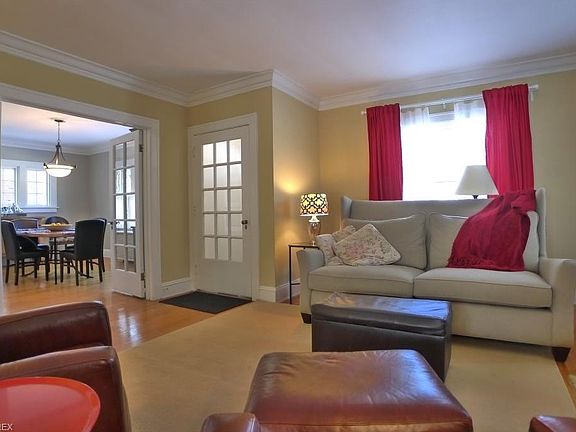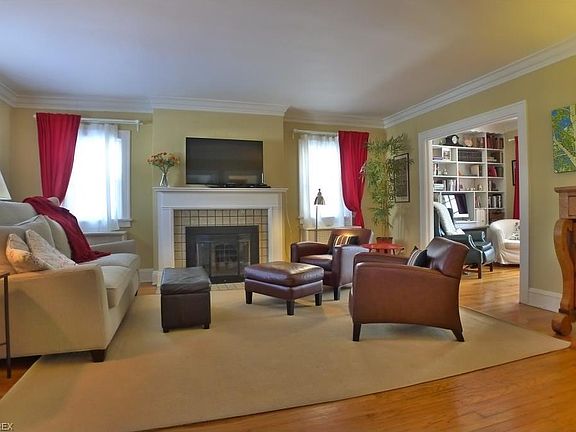 Charming Center Hall Colonial in the desirable Fernway neighborhood. This 5 Bedroom 2.5 Bath home has character and charm! Beautiful crown moldings and hardwood floors abound. Large living room with elegant mantel and fireplace. Lovely and spacious formal dining room with french doors. Cozy family room with built-ins leads to porch and backyard. Updated large white kitchen with center island, breakfast bar, tons of storage, and stainless steel appliances. Four bedrooms on second, all with hardwood, and updated white bath. The third floor is a fabulous 5th bedroom suite with full bath. Newer windows, neutral decor and updated interior. New concrete driveway. Do not miss this classic Shaker Heights home!