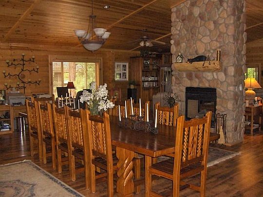 Exquisite full log home on 9th Fairway at Pinetop Lakes Country Club has the look and feel of a true Mountain home. The knotty pine accents are warm & inviting. Features include: surround sound in living room & master bedroom, double sided gas fireplace into living room & dining room, insulated interior walls, ceiling fans throughout, custom cabinets, over sized garage w/storage cabinets, generous sized hot tub/spa, natural gas hook-up for BBQ & heater on back deck, professionally landscaped yard.