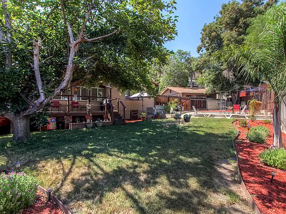 Wow! Single story entertainer's delight here!! Plenty of room inside and out for gatherings throughout the year! Four different areas to relax in the backyard; 3-BR, 2-BA plus a bonus room that is currently used as a large dining room, seating 8+ people! Indoor laundry, a cozy fireplace in the living room, and the skylight give you ease of living all on one floor. Hardwood floors in the LR, hallway, & two bedrooms are the perfect touch. Many kitchen cabinets!! There's more; an ~325 sq ft Bonus Building!