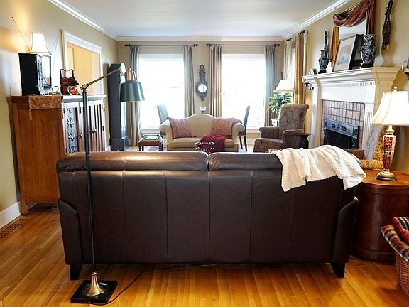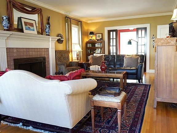 Beautiful, exceptionally well-maintained, brick Colonial has 4 bedrooms and 3 full baths. There are gleaming hardwood floors throughout this house; and one is immediately struck by all the sunlight that shines through this home. The living room is spacious, features large windows, and has a large fireplace surrounded by white columns and large mantel with dentil molding. The living room opens to a separate sitting room/den. The dining room is bright and ideal for entertaining. The kitchen has been updated and is incredibly attractive. The cabinets are custom, white wood with clear crystal pulls. The counter top is granite with an undermount sink. There is a very convenient peninsula with hardwood countertop. There is also a very impressive China cabinet with leaded glass doors. A true highlight of the first floor is an enclosed patio with glass sliders on 3 sides and a slate floor. This room is bright, beautiful and surprisingly spacious. The second floor consists of 4 bedrooms and 2 full baths. Both bathrooms feature updated fixtures and new or restored ceramic tile. The master has a shared private bath with a bedroom currently used as an office. The third floor consists of a full living suite with full bath. This home also includes central air. Don't miss this Fernway gem!
