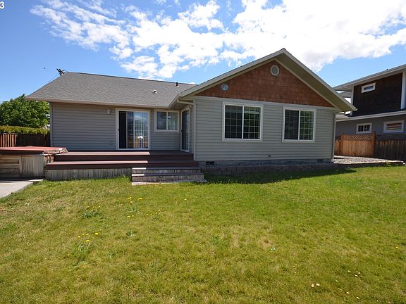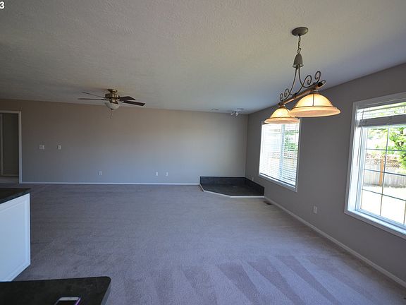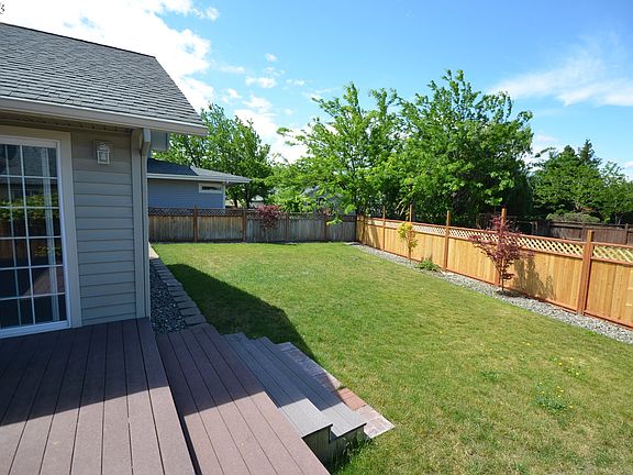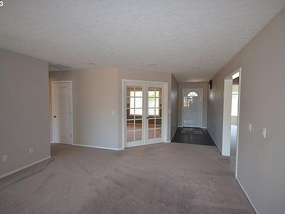 Spacious one level home with an open living space floor plan. The wide entry way opens to the living/dining area. The kitchen has a lot of counter space and nice white cabinets. From the kitchen sink there is a view to the back yard. The dining room has a sliding door to the deck, this makes for easy access to outdoor entertaining. The primary bedroom is quite large and has a sliding door to the deck. There is a spacious walk in closet, a double vanity sink and the toilet is in a separate water closet. Two additional bedrooms and a guest bath is on the opposite end of the house from the primary bedroom. They are a Jack and Jill style with the bathroom between.The 4th bedroom has french doors, this room may be better used as a den or office since it does not have a closet and opens to the living room.The hallway across from the kitchen you will find the laundry room with counter space and cabinets, this is the access to the double car garage.Features include: recessed lighting, tile floors, gas range, big backyard with Trex type deck.There is ample parking along side the house for a large RV as well as plenty of parking in front of the garage (off street).Photos used show vacant home prior to tenants occupancy.FYI:In Jan. 2023 the double oven and cooktop that you see in the photos were removed and replaced with a freestanding gas range. Also you might notice a hottub in one photo, that has also been removed.