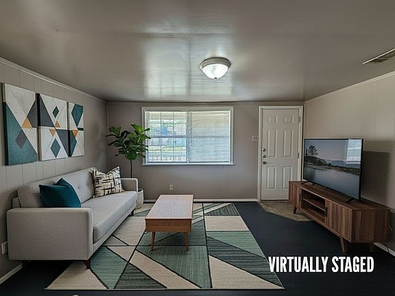 3 bed 1 bath duplex with painted wood flooring and checked pattern vinyl flooring in the kitchen. The roomy living room features a ceiling fan and plenty of natural light from large windows. Bedrooms also include ceiling fans. Enjoy a covered porch and a covered carport for convenient parking.