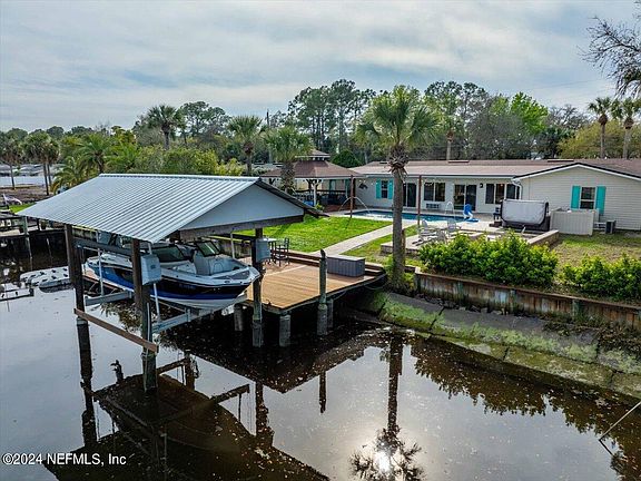 Welcome to your ultimate Isle of Palms sanctuary! This stunning 4-bedroom, 4-bathroom brick home epitomizes luxury living for boating enthusiasts and entertainers alike. Meticulously remodeled to perfection, this residence offers three full ensuite bedrooms, providing unparalleled comfort and privacy. Nestled along a deep water canal, recently dredged to ensure approximately 5 feet of depth at low tide, this property grants seamless access to the intercoastal waterway. Boasting a boat house, a 10,000-pound boat lift, and a floating dock with dedicated Jet Ski parking, it's a haven for watercraft aficionados. The expansive 3 1/2 car garage is ideal for storing trailers or accommodating larger vehicles, complemented by double gates providing additional trailer storage. Arrive home in style with a pavered driveway, leading to a generously sized lot featuring a pristine saltwater pool, perfect for relaxation and leisure. Inside, discover vaulted ceilings and exquisite hickory wood flooring, harmonizing with the elegance of new white quartz countertops and a gourmet kitchen equipped with high-end appliances. Cozy up by the gas fireplace or unwind in the air-conditioned Florida room, complete with a large hot tub for indulgent evenings. Step outside to the meticulously landscaped backyard, where a new pavered fire pit offers serene waterfront views. Entertain guests under the expansive covered gazebo, featuring convenient hookups for TVs and power, ensuring every gathering is memorable and enjoyable. Experience the epitome of luxury living in this meticulously crafted home, where every detail has been thoughtfully curated to elevate your lifestyle.