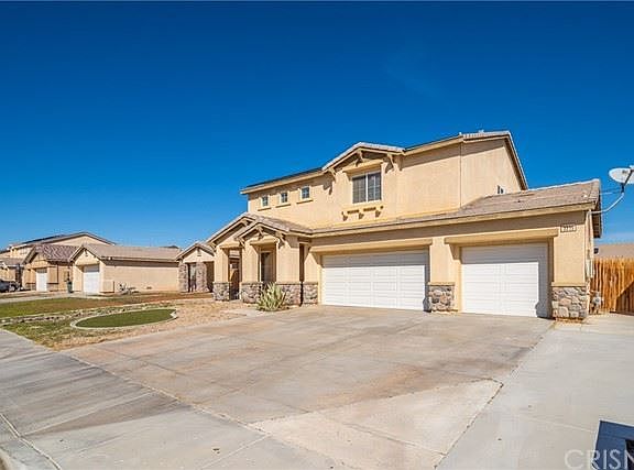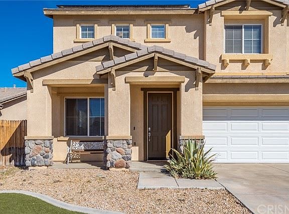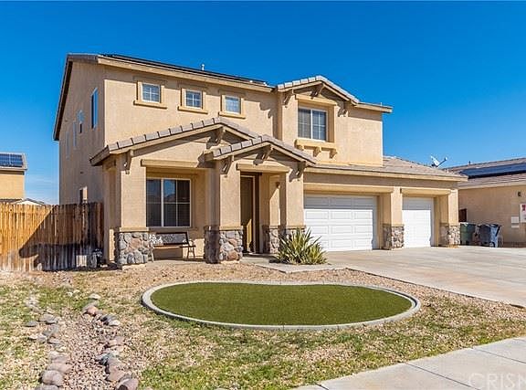 Beautiful West Park Rosamond 4 Bedroom Home With Loft. Well maintained, open, spacious home. Enter into the formal living & dining area with laminate wood flooring which flows right into the spacious family room with fireplace & built In entertainment cabinet, ceiling fan & open to the kitchen with large island, breakfast bar, ample ebony colored cabinets & counters, stainless steel appliances, informal dining area with decorative lighting. A sliding glass door off the kitchen brings you to the backyard, landscaped with turf, decorative curbing, shed, oversized patio. Downstairs bedroom & full bathroom. Upstairs is a large loft, perfect for a 3rd family area, kids play area, game room, so many possibilities. The primary bedroom is massive with oversized baseboards, great view to back yard & has an attached bathroom with dual sink vanity, separate bathtub & shower & huge walk-in closet. Both upstairs secondary bedrooms are oversized & spacious. Secondary bathroom upstairs features a dual sink vanity, separate room with toilet & bathtub/shower combination. There is an upstairs laundry room with cabinets & storage space. Attached 3 car garage with an oversized driveway with plenty of parking. Dual AC units, low maintenance front & back yards, Solar is a purchase power plan; you pay for what you use.