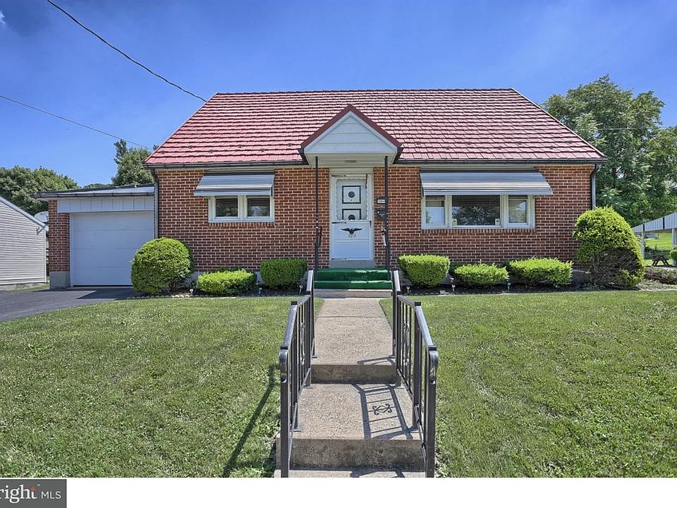 Solidly built brick cape cod with 4 bedrooms, 1 bath, full, unfinished basement, large eat in kitchen, hardwood floors in lr, and bedrooms on main floor, kitchen has wall oven, cook top, refrigerator and dishwasher that remain. There are 28 handles on the wooden cabinets and a built in buffet with 8 drawers, and 4 doors up and 4 doors down for plenty of storage. There is a nice size sun room in the back of the home and a nice park like back yard with nice mature landscaping. The interior is dated and needs cosmetics but there is a lot of potential for a nice single home in Muhlenberg schools with a nice 1 car garage. There are 2 more bedrooms and closets upstairs. Come by and see what you can do with your own updated decorating touches. Home is being sold "as is". Home inspections are for buyer information only. Seller will not be making any repairs other than those necessary for financing.