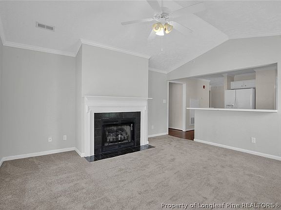 Introducing a charming 3-bedroom, 2-bathroom condo, nestled within the vibrant Harbor Pointe Condominiums, situated alongside a serene lakefront. This inviting abode offers seamless connectivity to Fort Liberty, shopping centers, and entertainment venues, making it an ideal investment opportunity or a perfect choice for a new home. The spacious layout includes a large master suite with a walk-in closet, providing ample storage and privacy. Enjoy the airy ambiance created by vaulted ceilings in both the master bedroom and living room, adding a touch of elegance and openness to the space. With its tranquil location and convenient access to amenities, this condo promises a delightful blend of comfort and convenience, whether you're seeking an investment property or a place to call home. *New carpet, please remove your shoes for showings*